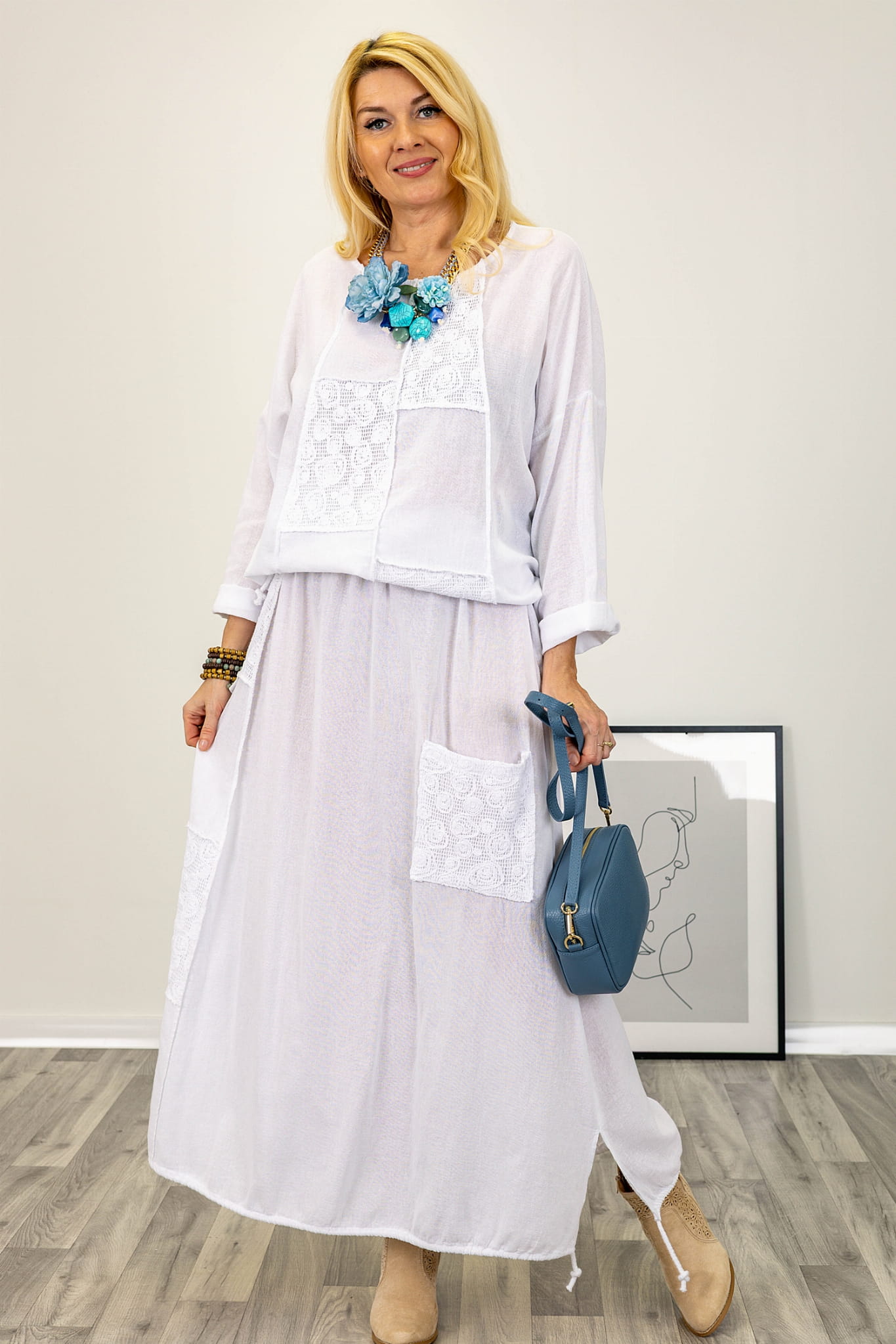 Asymetryczna tunika oversize z ażurowymi panelami i ściąganym dołem Acquavivaplatani biała