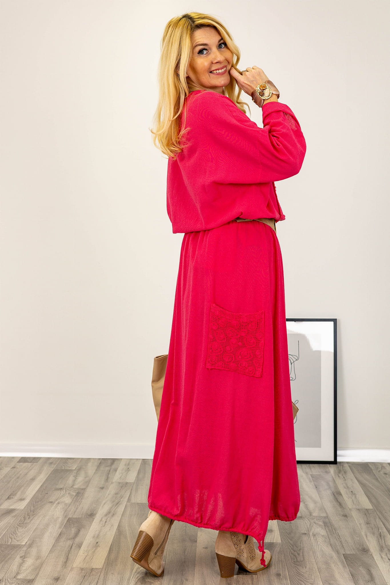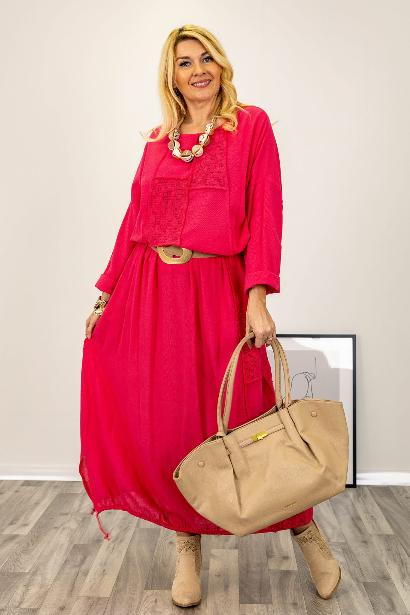 Asymetryczna tunika oversize z ażurowymi panelami i ściąganym dołem Acquavivaplatani fuksja