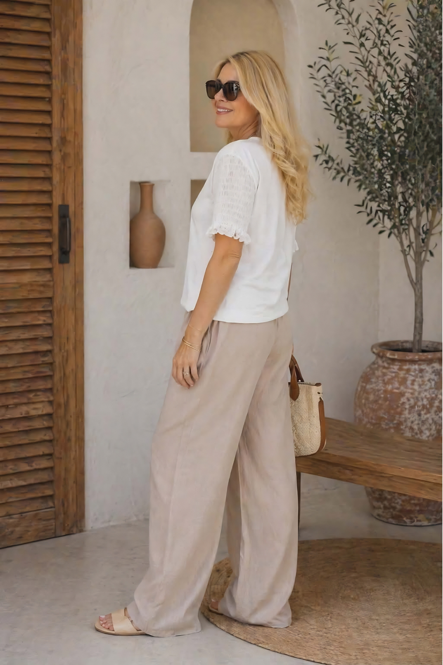 - bluzka w odcieniu ecru, kremowym i beżowym