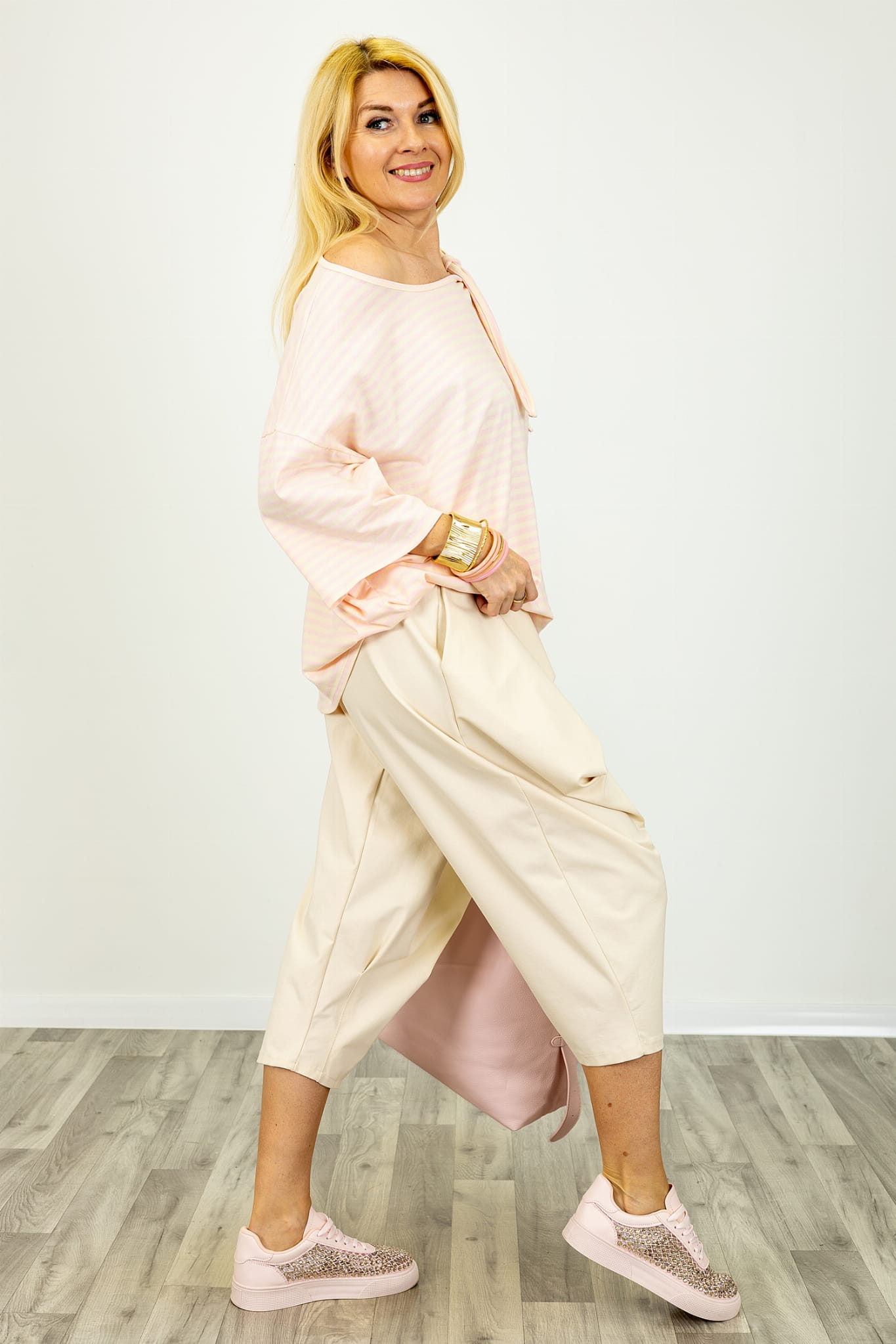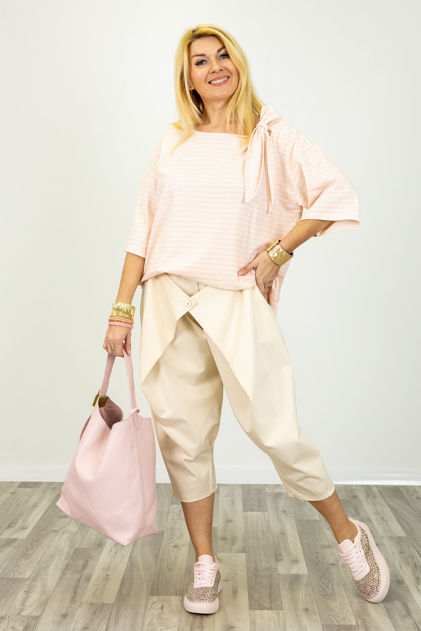 Bluzka Argentario to model oversize w paski, który przyciąga uwagę ciekawym detalem przy ramieniu i swobodnym krojem. Luźniejszy fason daje pełną wygodę i sprawia, że materiał naturalnie układa się na sylwetce. To propozycja dla kobiet, które cenią komfort, ale jednocześnie chcą wyglądać stylowo i kobieco.
