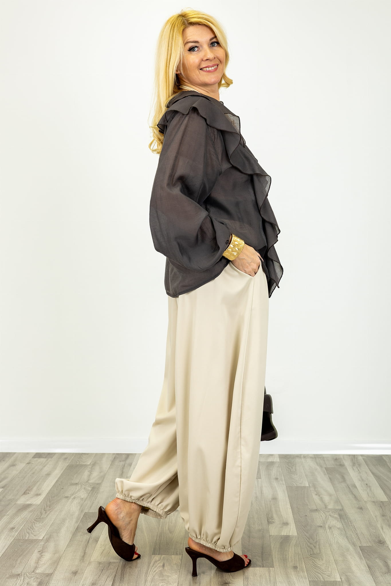 - długi rękaw z marszczeniem