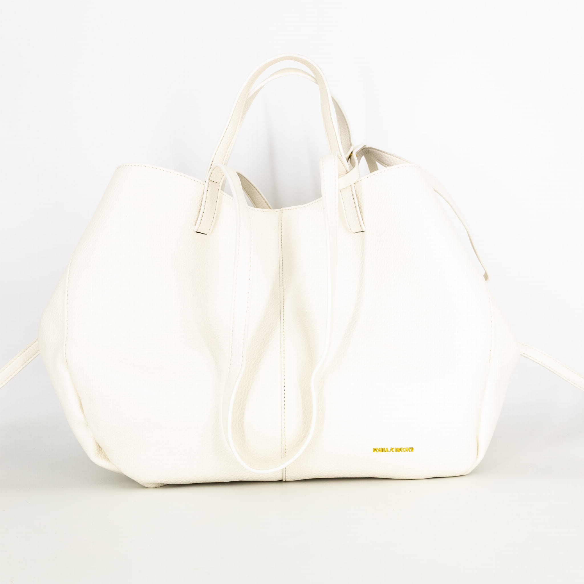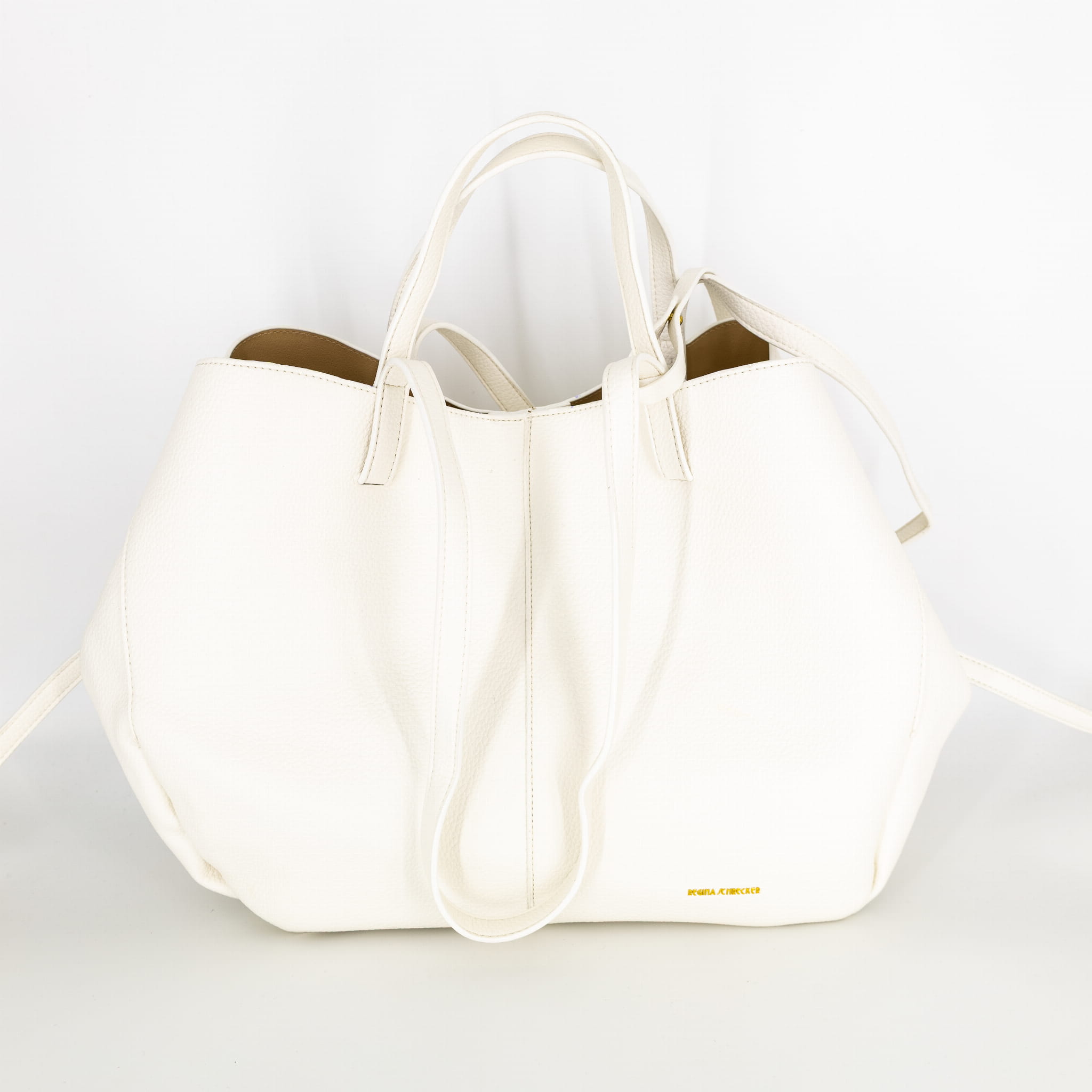 Duża torba na ramię ze skóry ekologicznej pojemna A4 z górnym uchwytem z saszetką Minervino biała