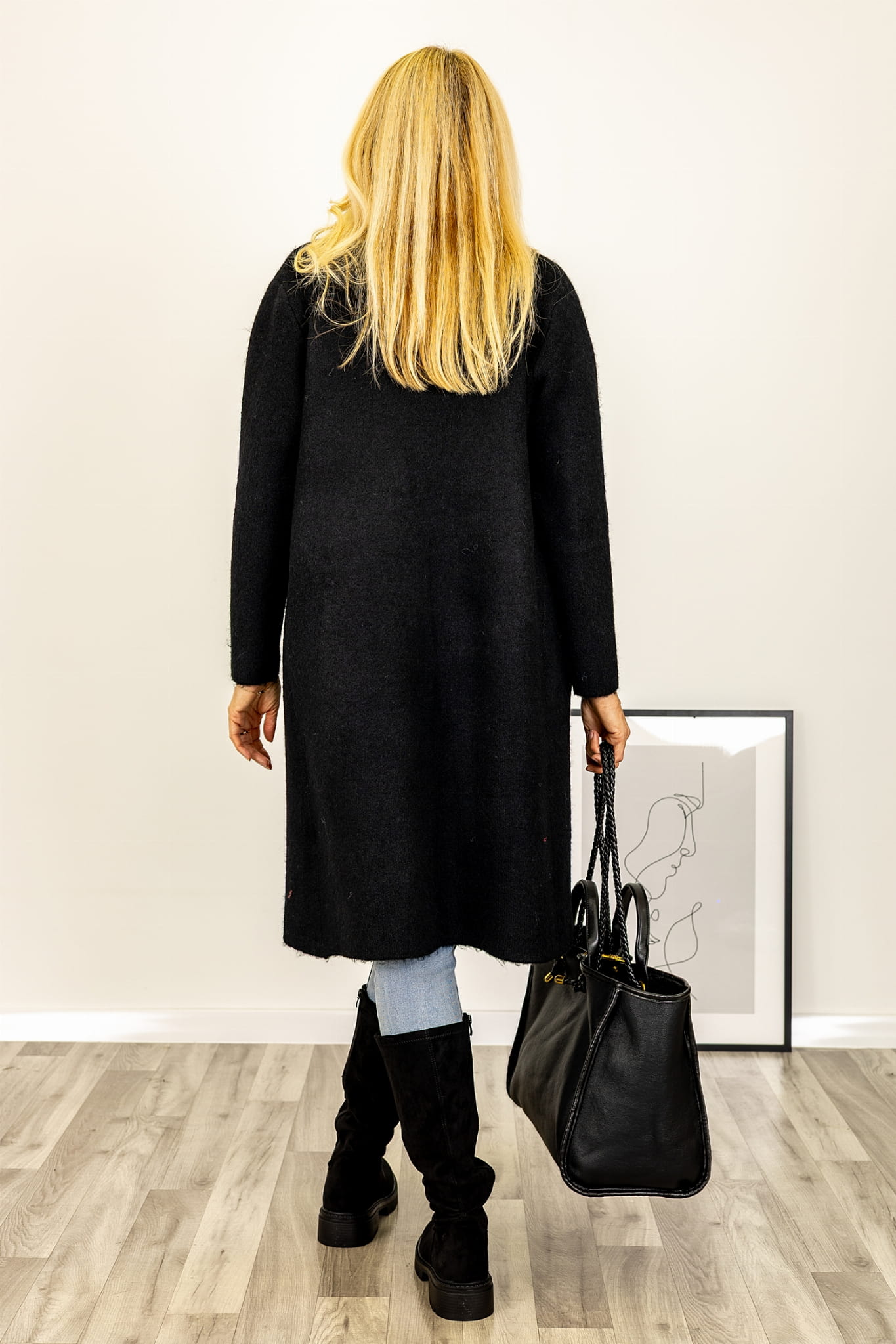 Kardigan długi damski z kieszeniami Collepinoa czarny