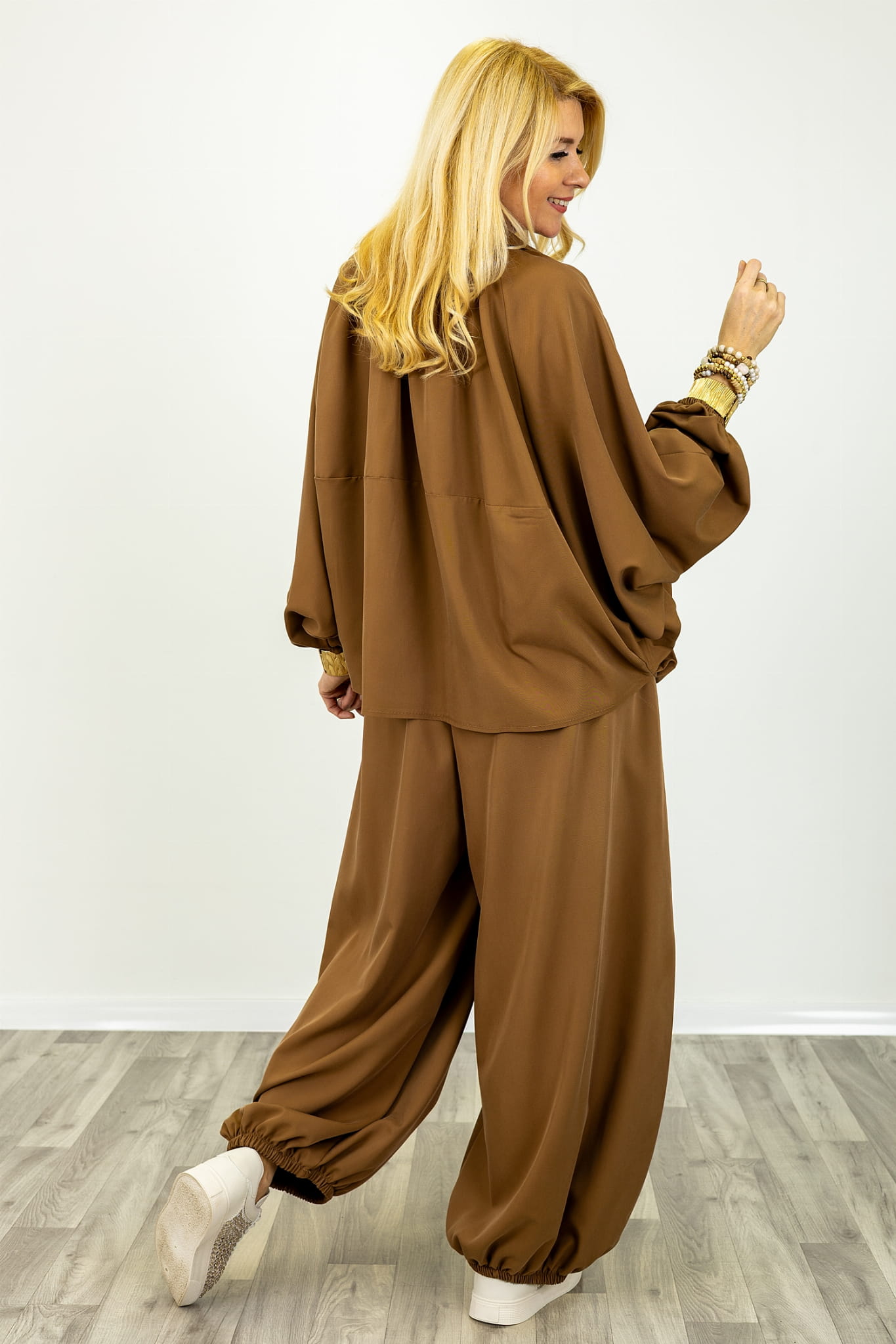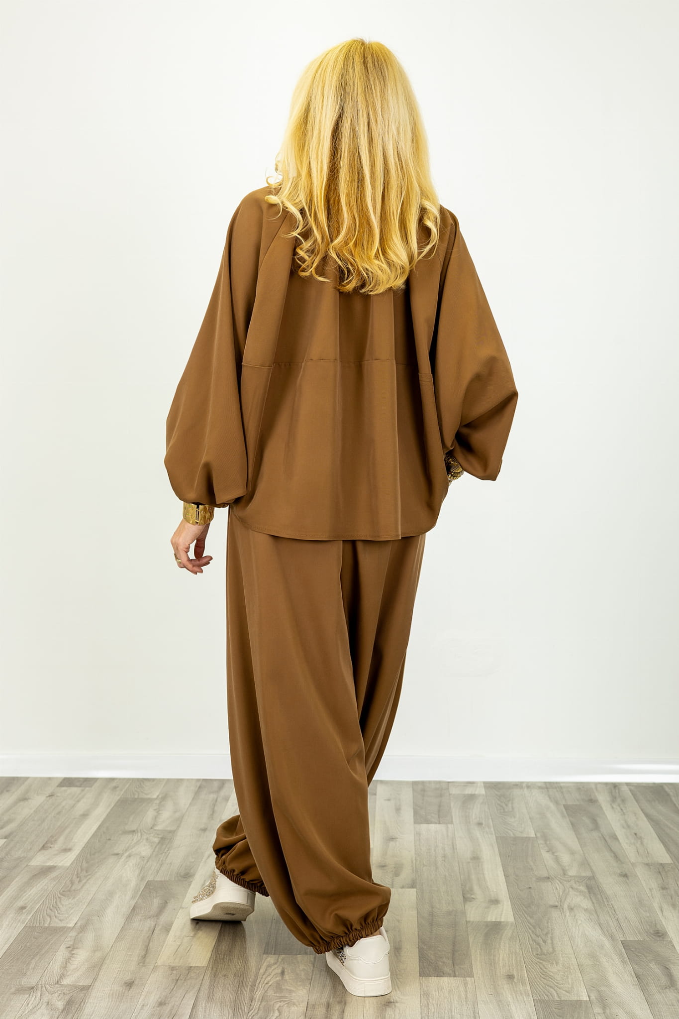 Kurtka bomberka o swobodnym kroju z rękawem kimono zasuwana na suwak Mosciano karmelowa