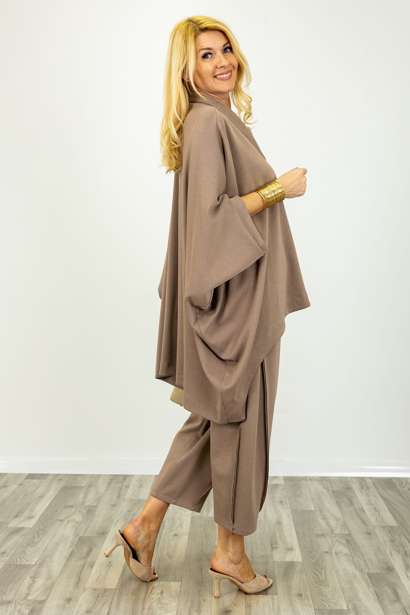 Narzutka żakiet oversizowa Montisola asymetryczna zapinana na guziki rękaw kimono fango
