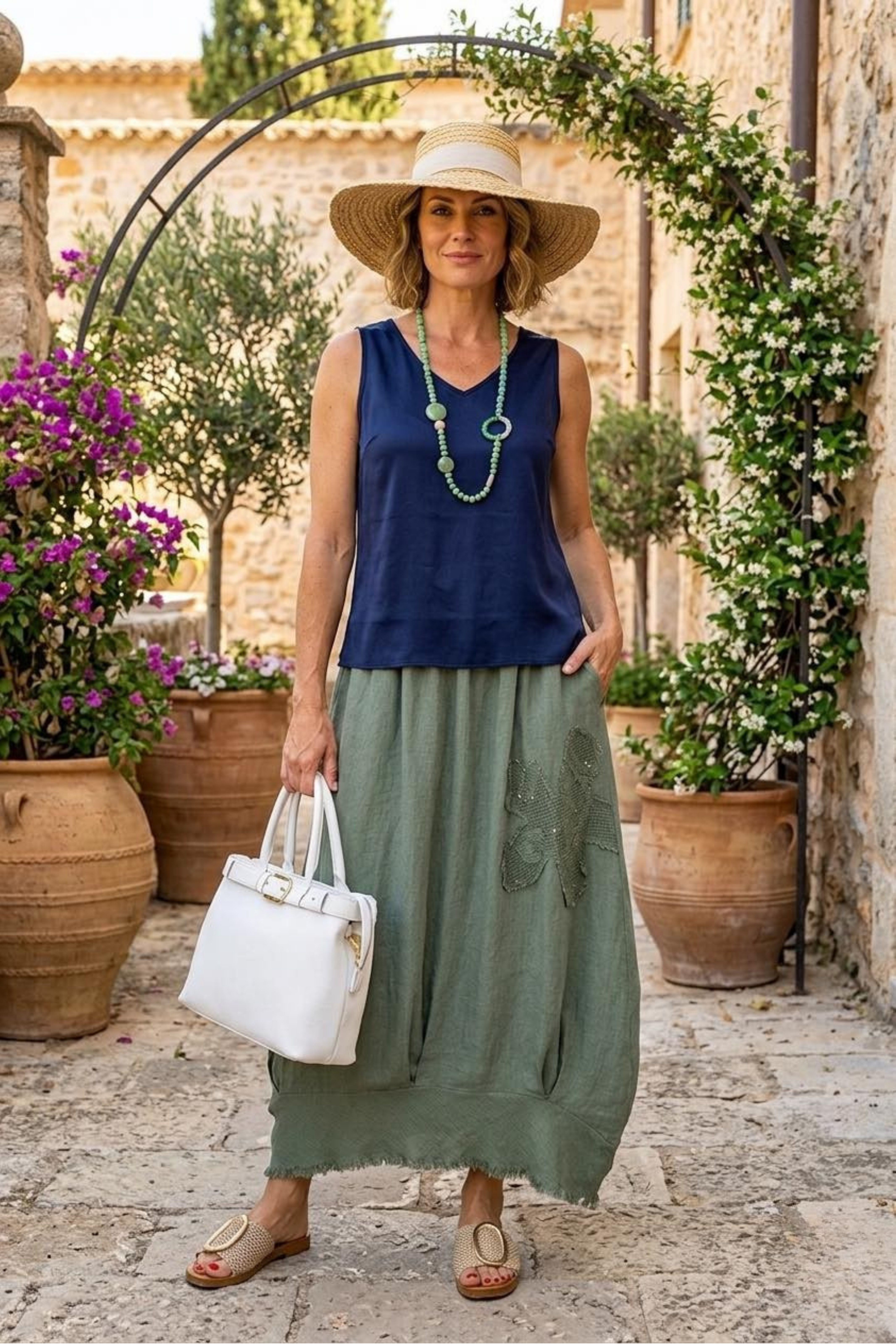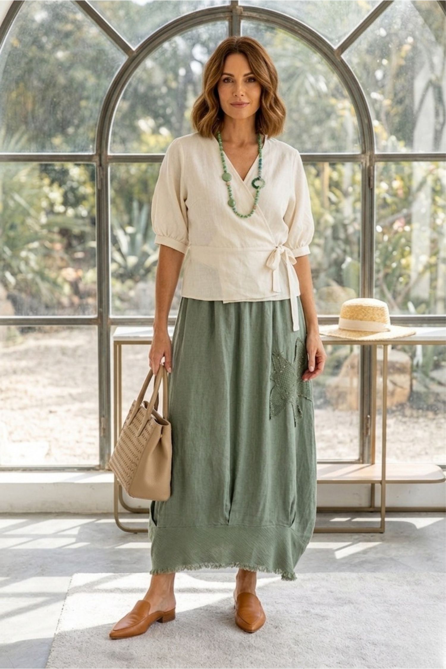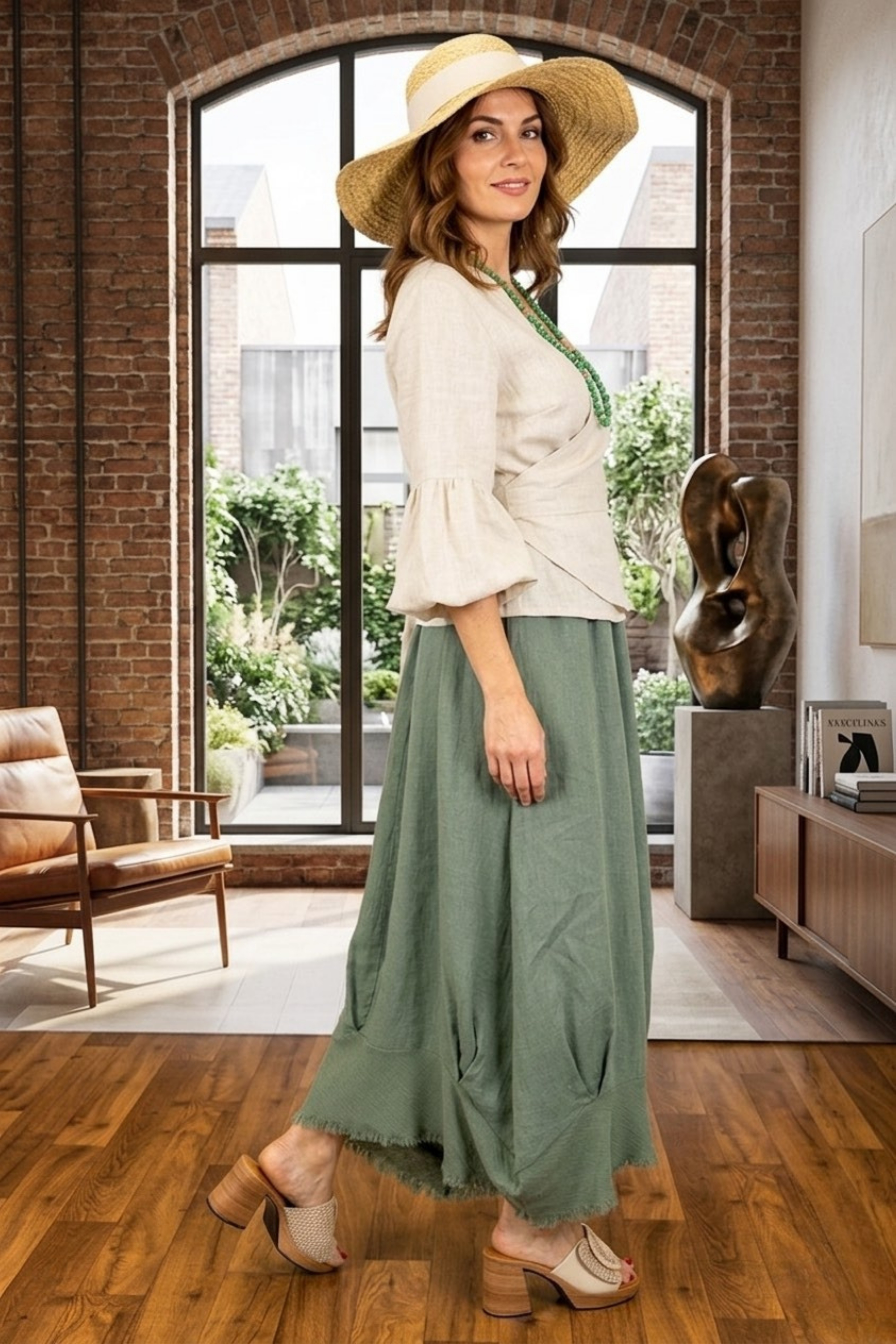 Ten model łączy naturalny materiał z dopracowanym wykończeniem, dzięki czemu spódnica lniana długa damska nie tylko dobrze wygląda, ale przede wszystkim świetnie się nosi.