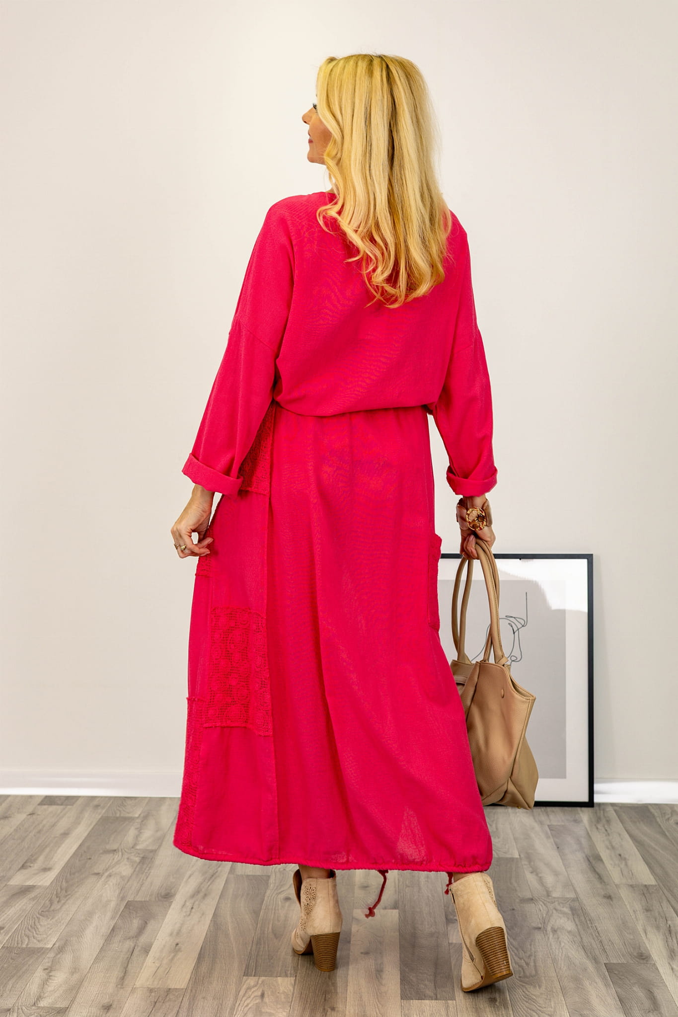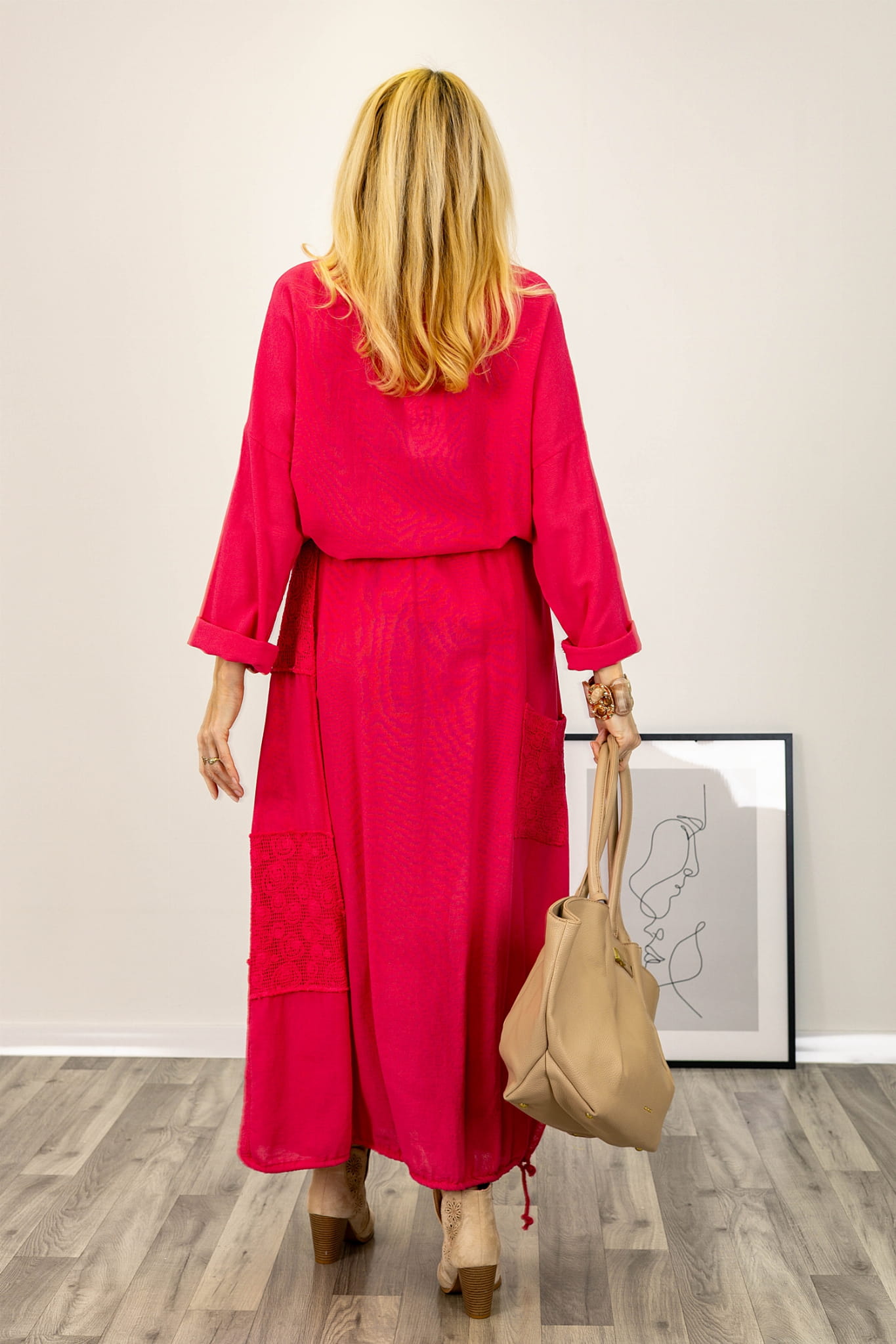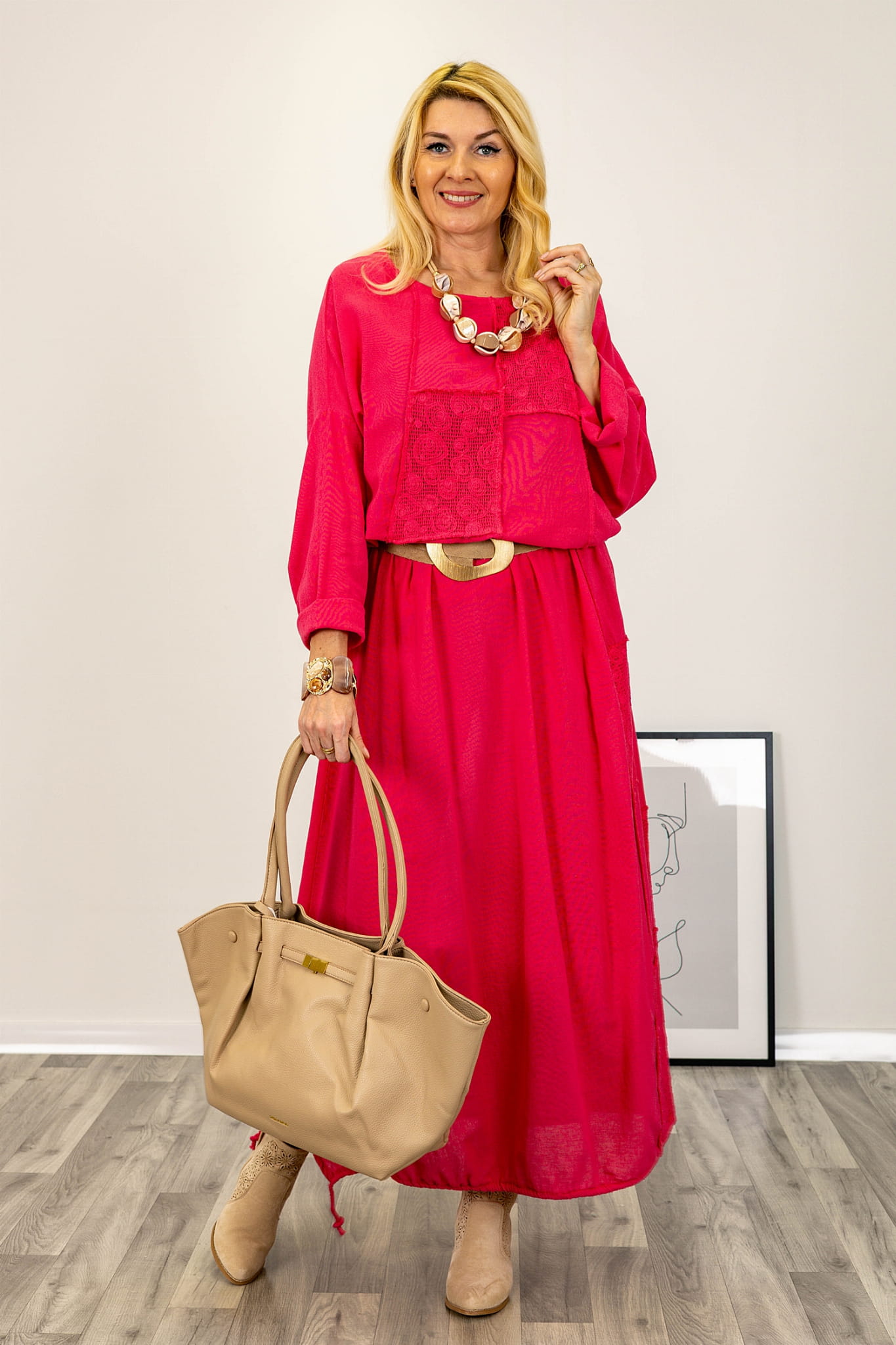 Spódnica maxi z ażurowymi wstawkami kieszenią i ściąganym dołem Benevello fuksja