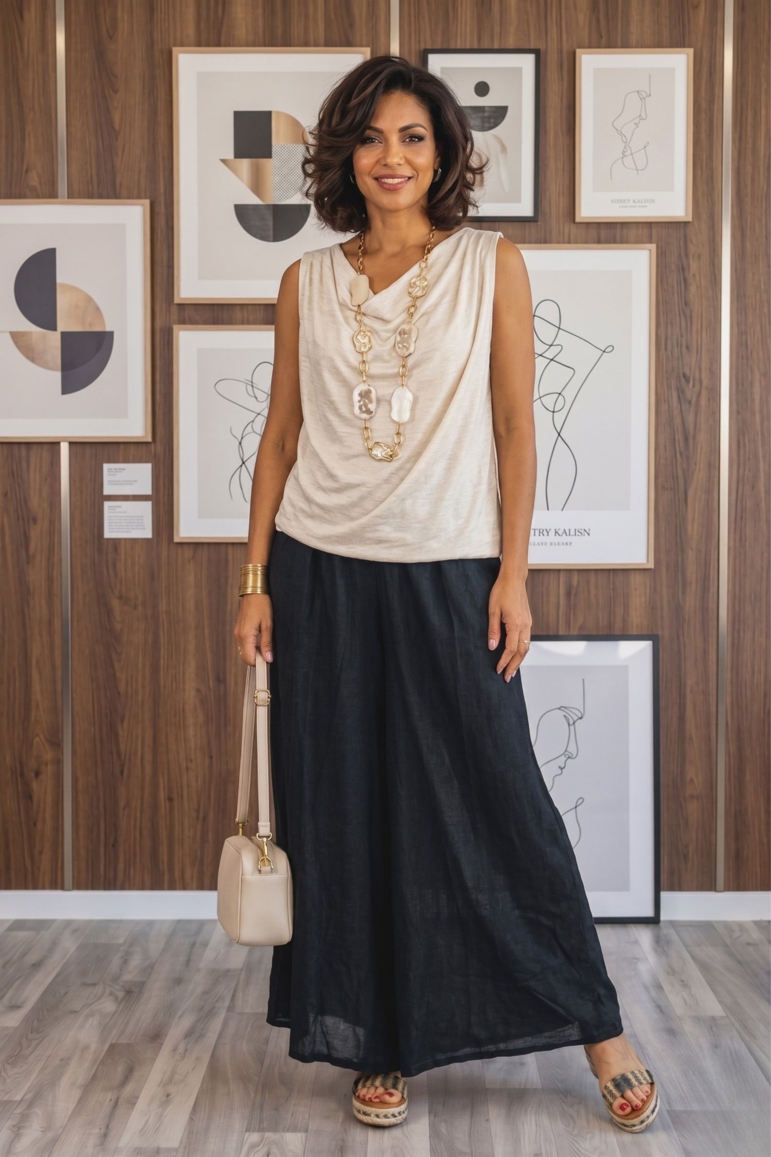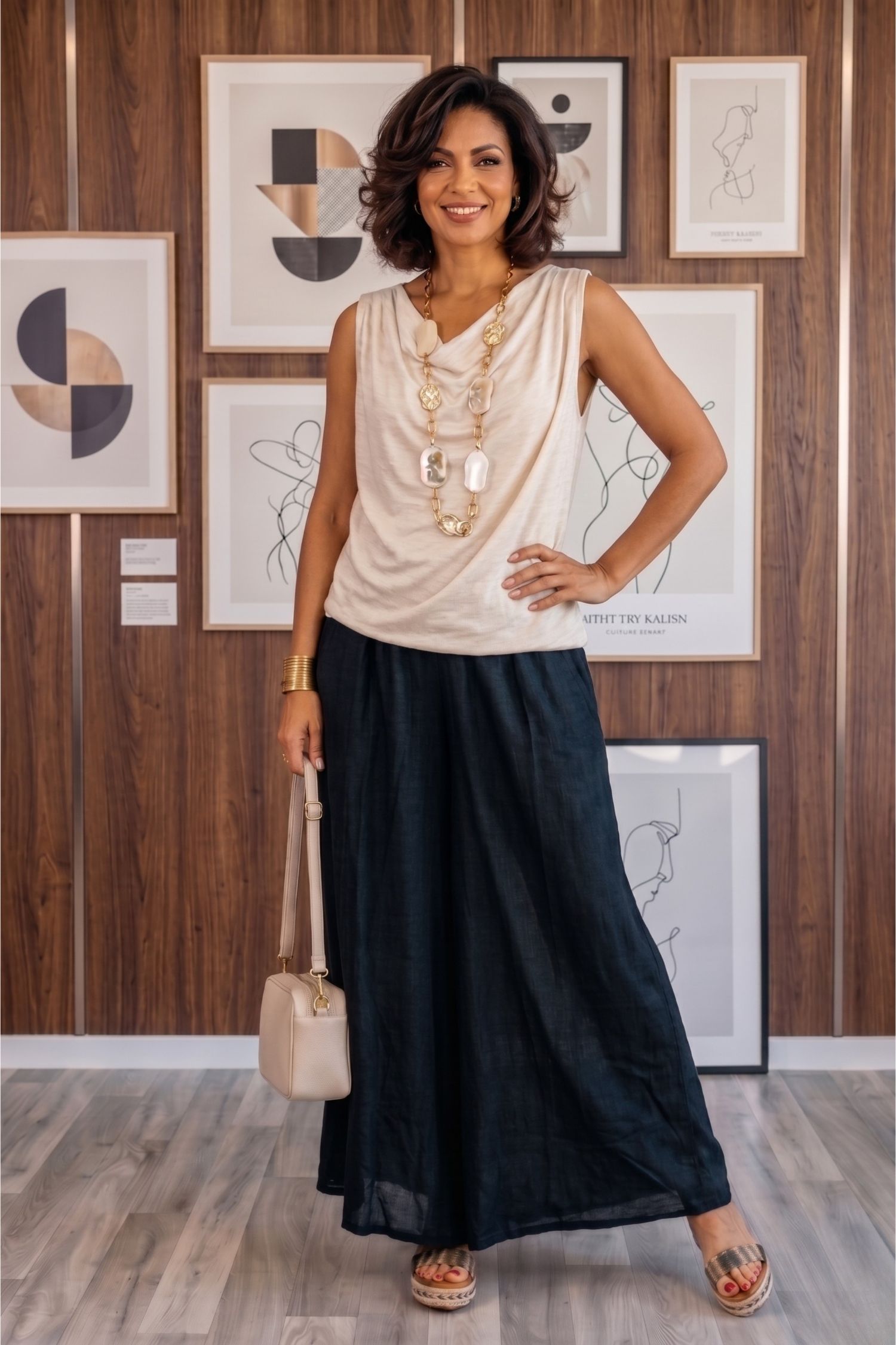 Luźna forma palazzo powoduje, że spodnie damskie z szeroką nogawką swobodnie układają się podczas ruchu i nie przylegają do nóg, co czyni je dobrym wyborem na cieplejsze dni. Bawełniana tkanina zapewnia przewiewność, dlatego spodnie palazzo bawełniane gniecione sprawdzają się zarówno latem, jak i w okresach przejściowych.