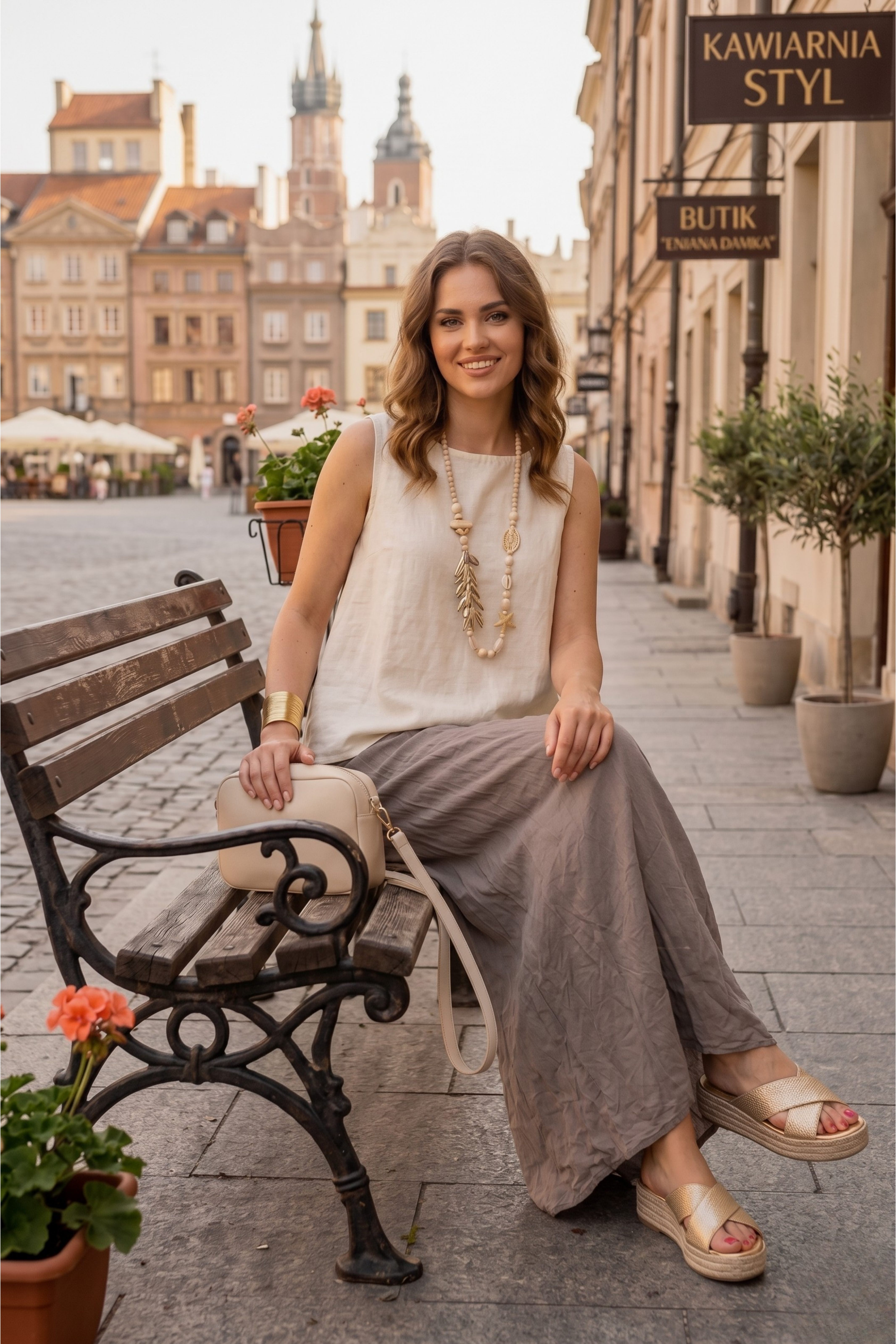 Jeśli zastanawiasz się, dla kogo są spodnie damskie palazzo z wysokim stanem na gumce, to ten model najlepiej sprawdza się u kobiet ceniących swobodę ruchu, luźniejsze fasony i komfort w okolicy bioder oraz ud. Dzięki gniecionej strukturze i szerokiej nogawce spodnie palazzo damskie tworzą lekką, swobodną linię sylwetki.