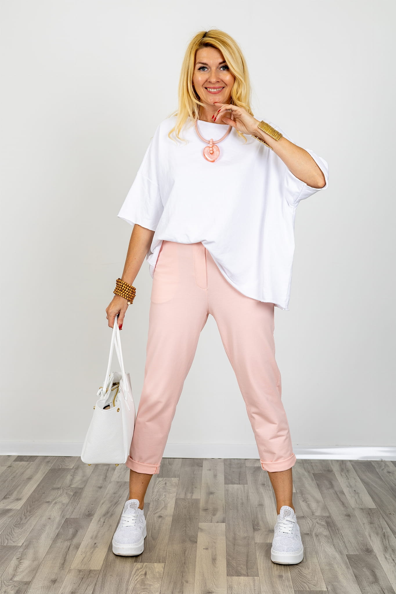 Spodnie dresowe z asymetrycznym przeszyciem i ozdobną patką z tyłu Ururi pudrowo różowe