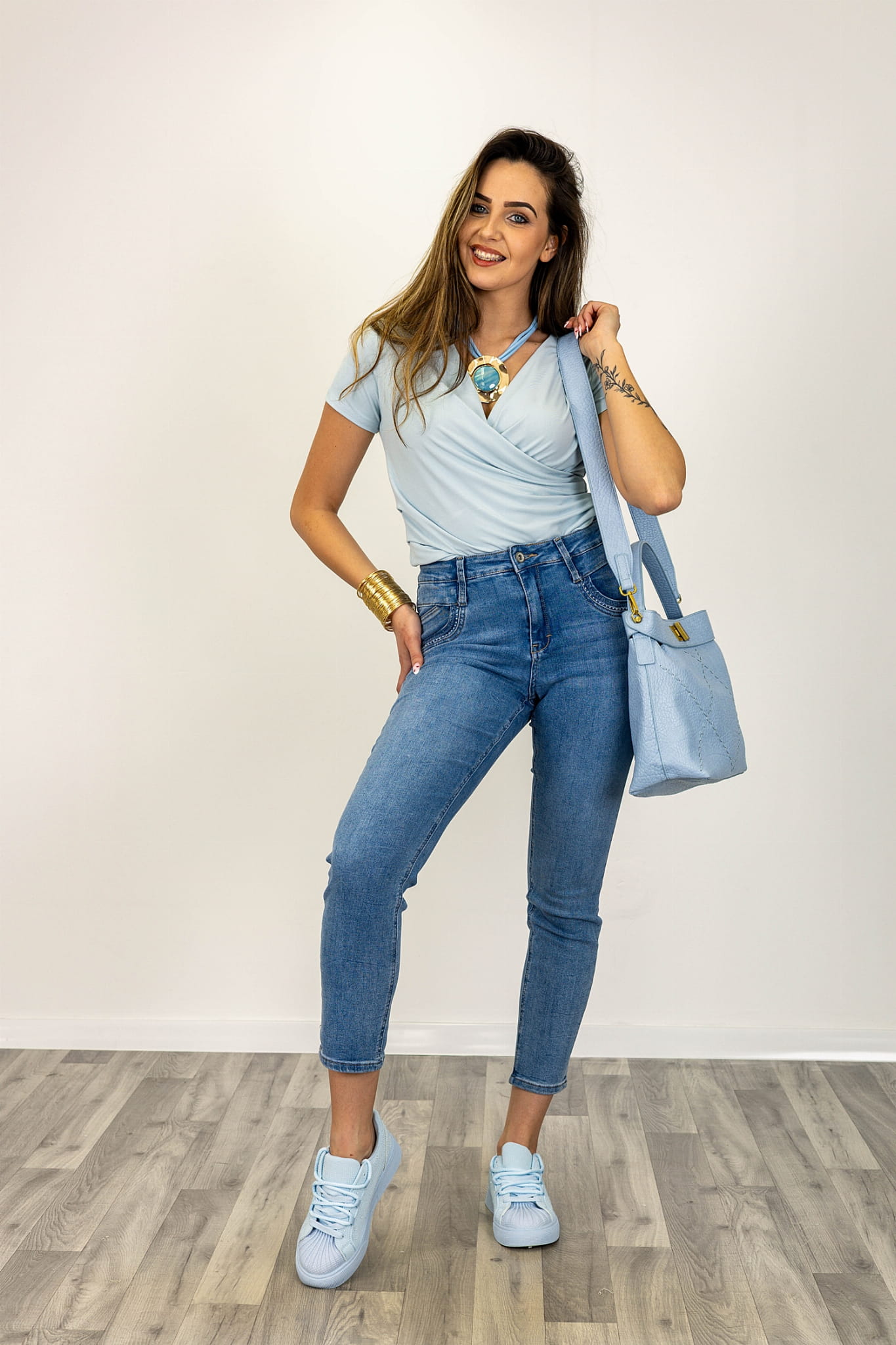 Spodnie jeans rurki denim blue to propozycja dla kobiet, które chcą podkreślić linię nóg i nadać stylizacji nowoczesny, dopracowany charakter.