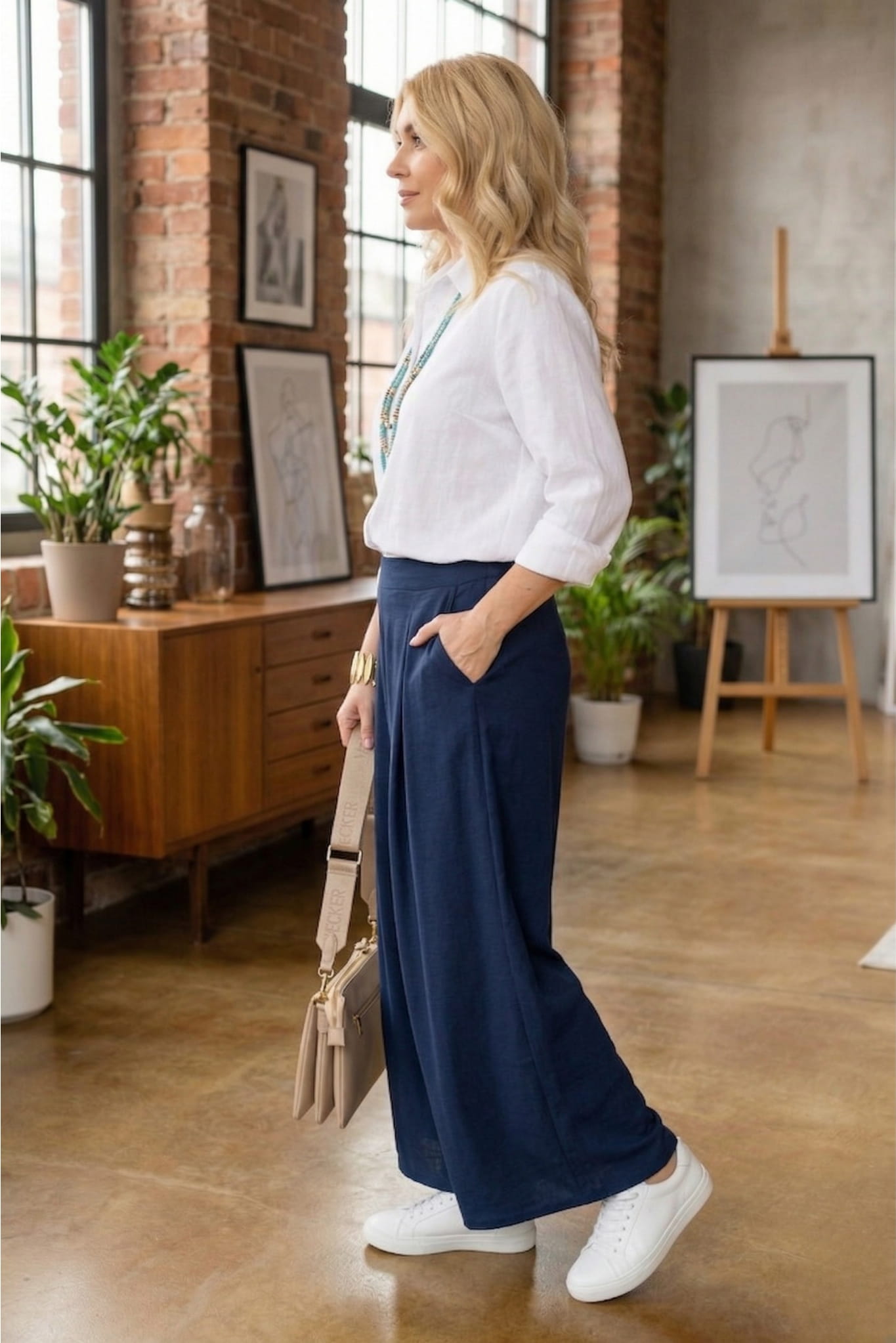 Spodnie palazzo granatowe wysoki stan to rozwiązanie, które sprawdza się zarówno na co dzień, jak i w bardziej dopracowanych stylizacjach. Materiał miękko układa się na ciele i pracuje przy każdym ruchu, tworząc efekt lekkości i naturalności. To wybór dla kobiet, które lubią wyglądać stylowo, ale nie chcą rezygnować z wygody. Spodnie damskie palazzo granatowe Isengoa pozwalają stworzyć spójną stylizację bez zbędnego wysiłku. Zakładasz i masz efekt, który wygląda świeżo, kobieco i z charakterem, dokładnie tak jak powinna wyglądać wiosenna energia w modzie.