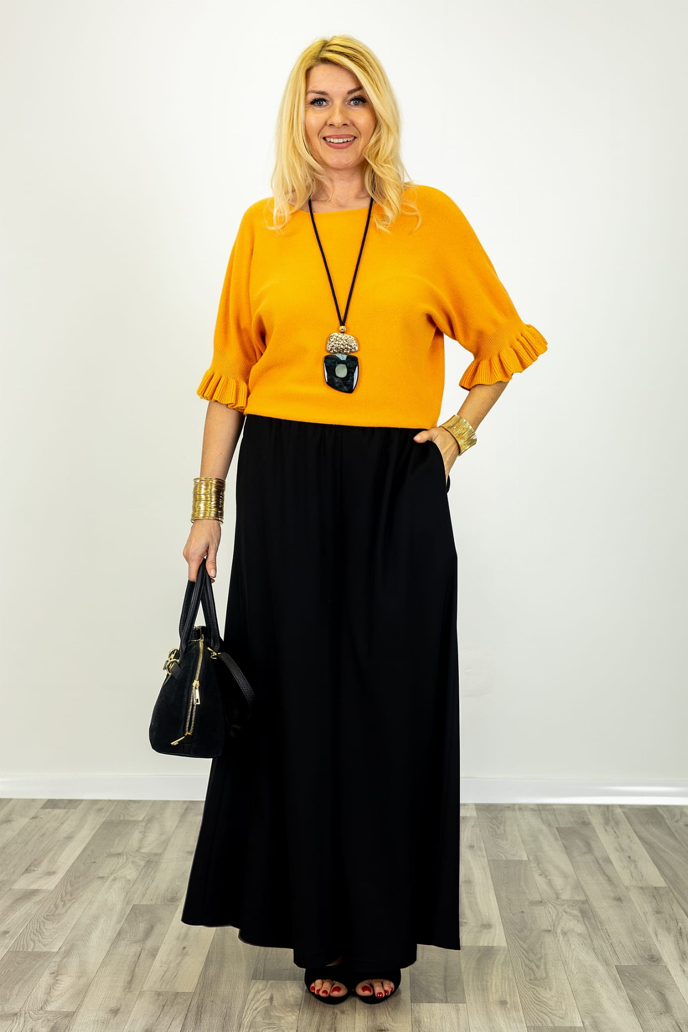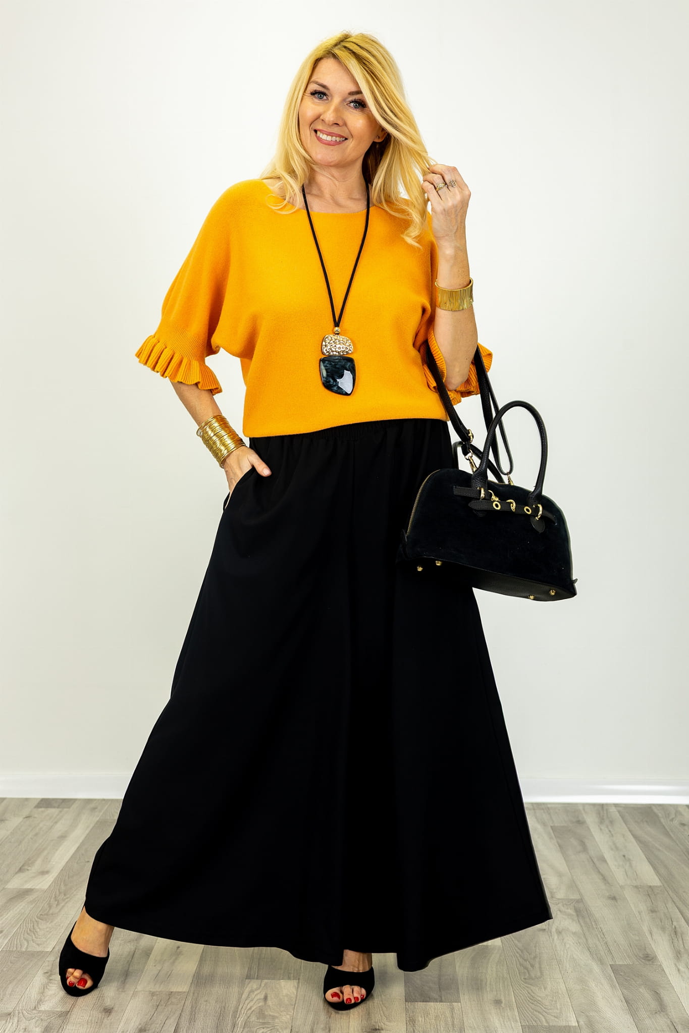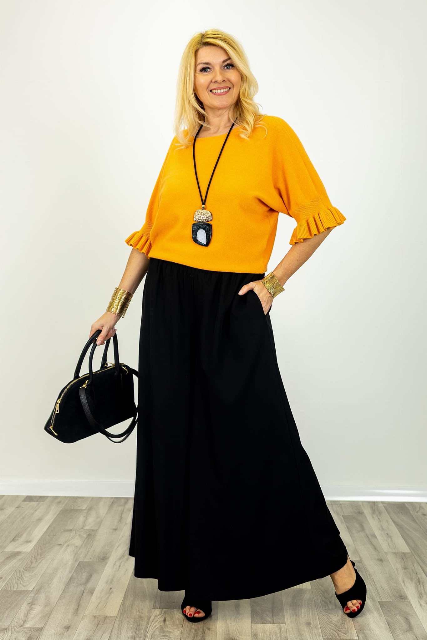 Spodnie palazzo z wysokim stanem gumką w pasie kieszeniami po bokach i szeroką nogawką Valdisotto czarne
