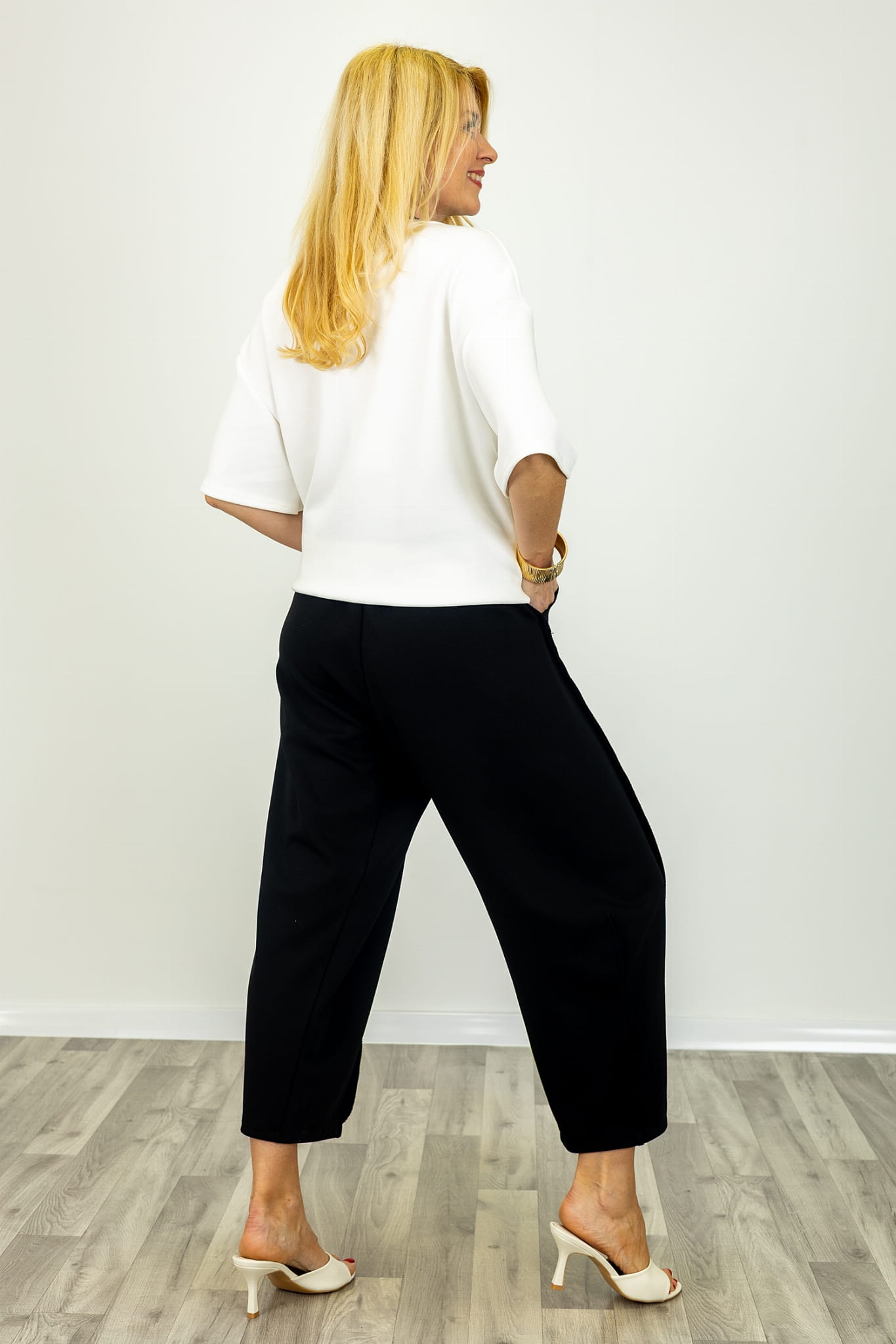 Spodnie typu balloon z ozdobnymi przeszyciami to absolutny must-have dla kobiet, które szukają oryginalnych krojów i bezkompromisowej wygody. Fason balloon charakteryzuje się nowoczesną, lekko bufiastą linią nogawek, która zapewnia swobodę w biodrach i udach, nadając sylwetce unikalny, modny kształt.