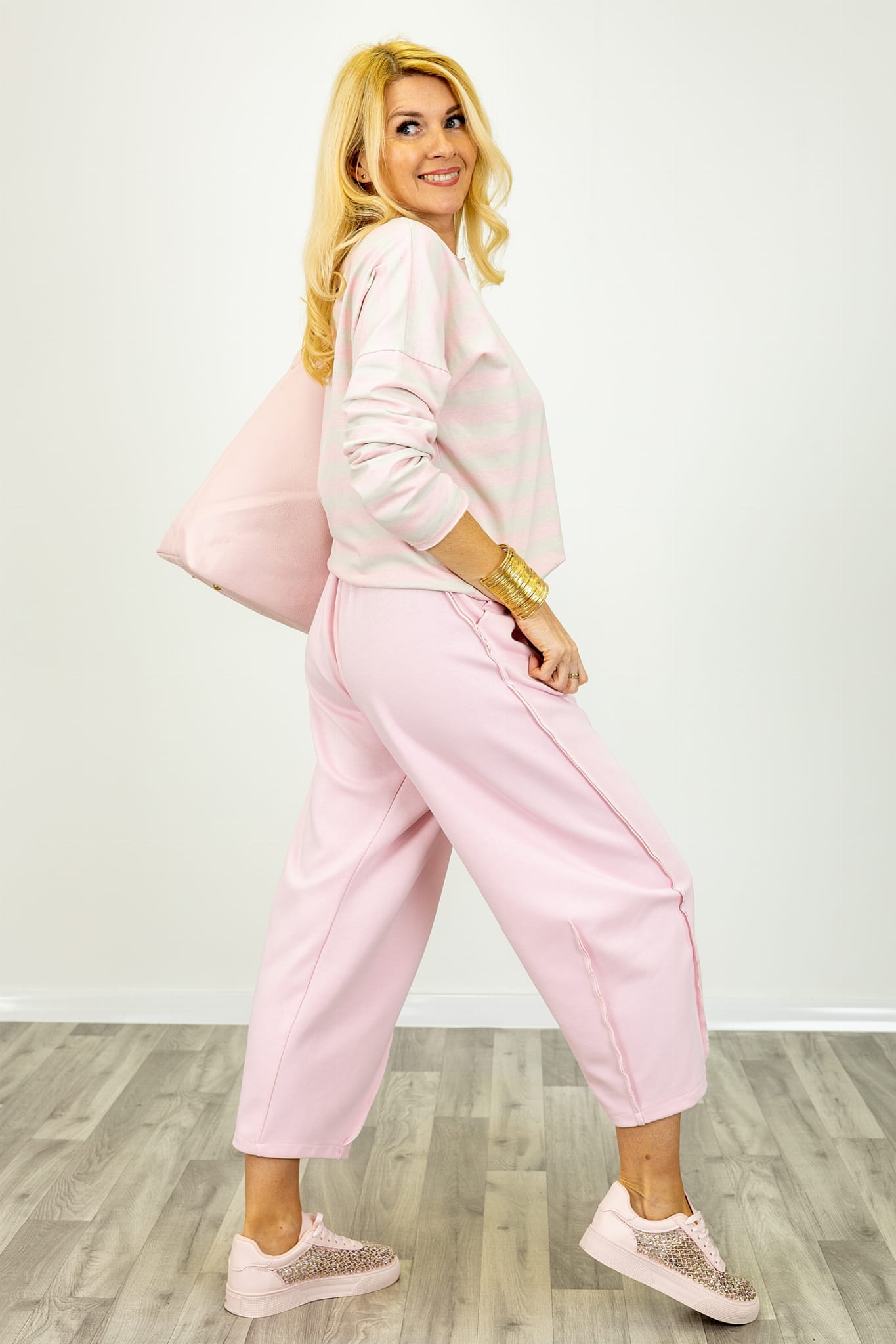 Spodnie typu balloon Sutria ozdobne przeszycia pudrowy róż