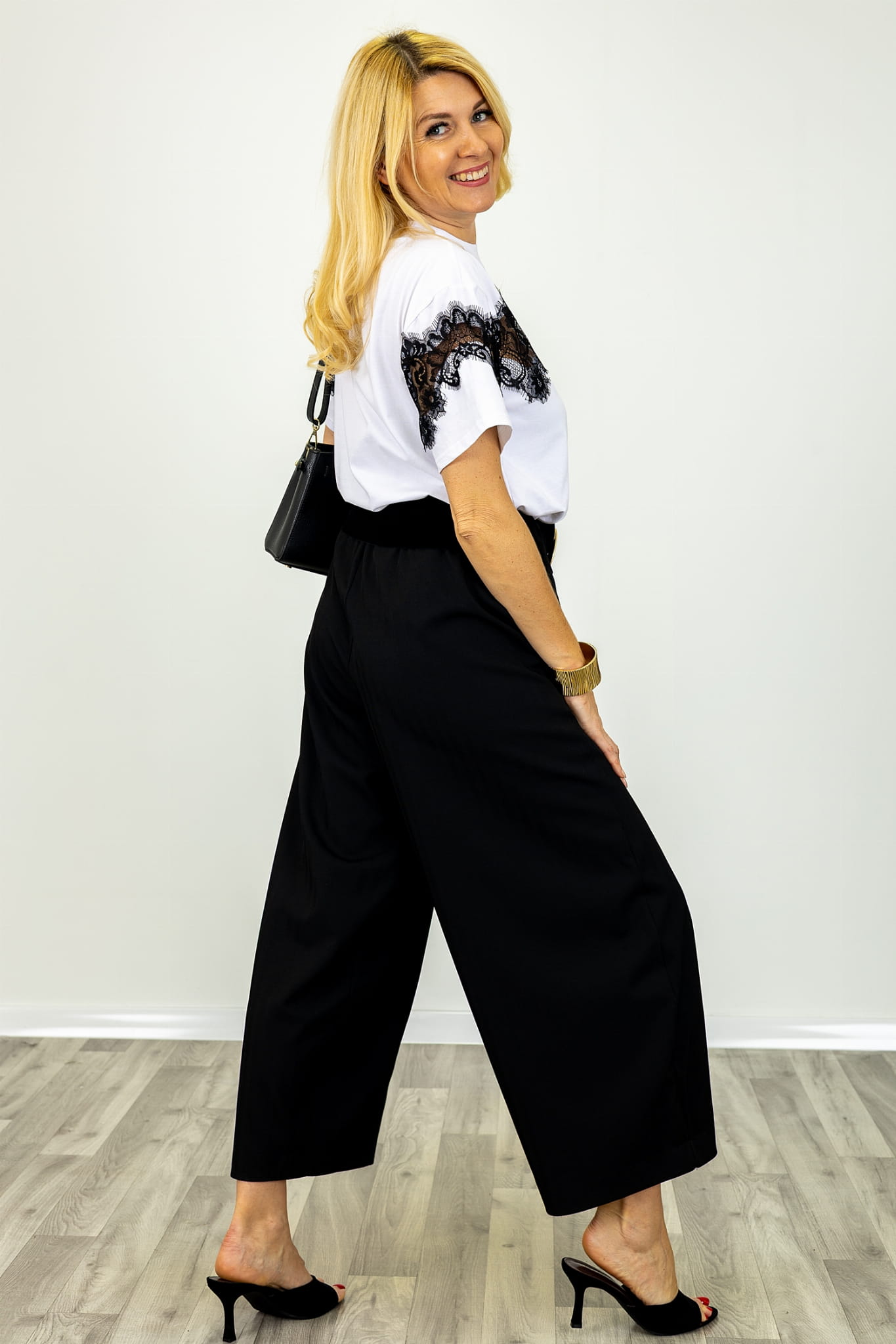 Spodnie Acreide to propozycja, która łączy wyrazisty fason wide leg z dopracowaną konstrukcją charakterystyczną dla włoskiego wzornictwa. Model został zaprojektowany z myślą o kobietach poszukujących wygodnych, a jednocześnie estetycznych rozwiązań do codziennej garderoby. Szerokie nogawki nadają sylwetce harmonijnych proporcji i tworzą efekt płynnej, uporządkowanej linii na całej długości spodni.