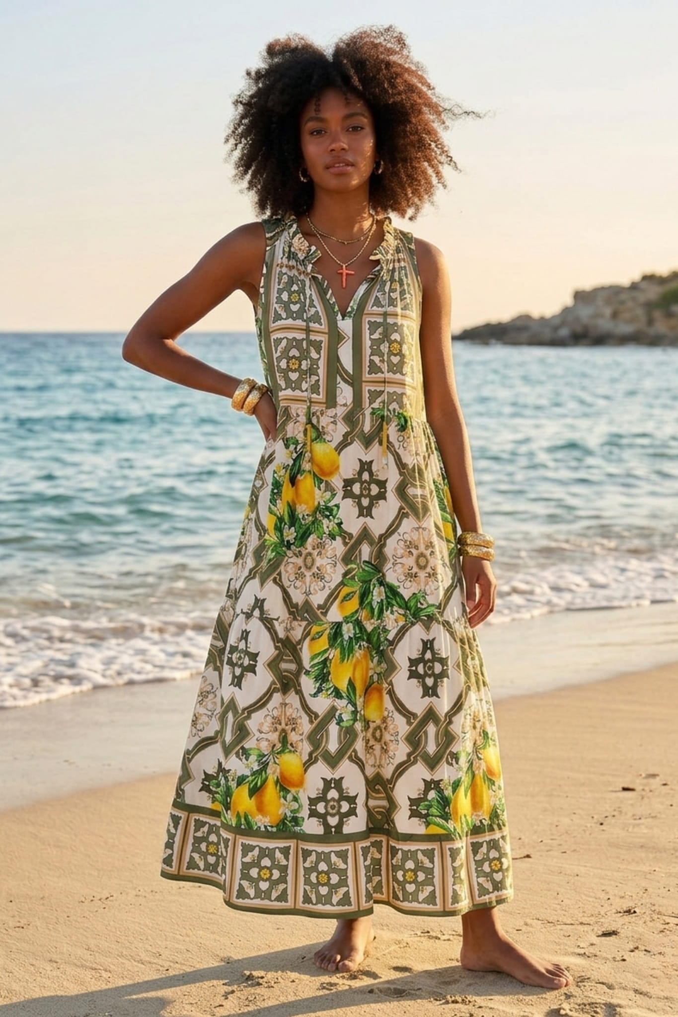 Sukienka maxi z cytrynowym printem, która pachnie latem i przyciąga spojrzenia.