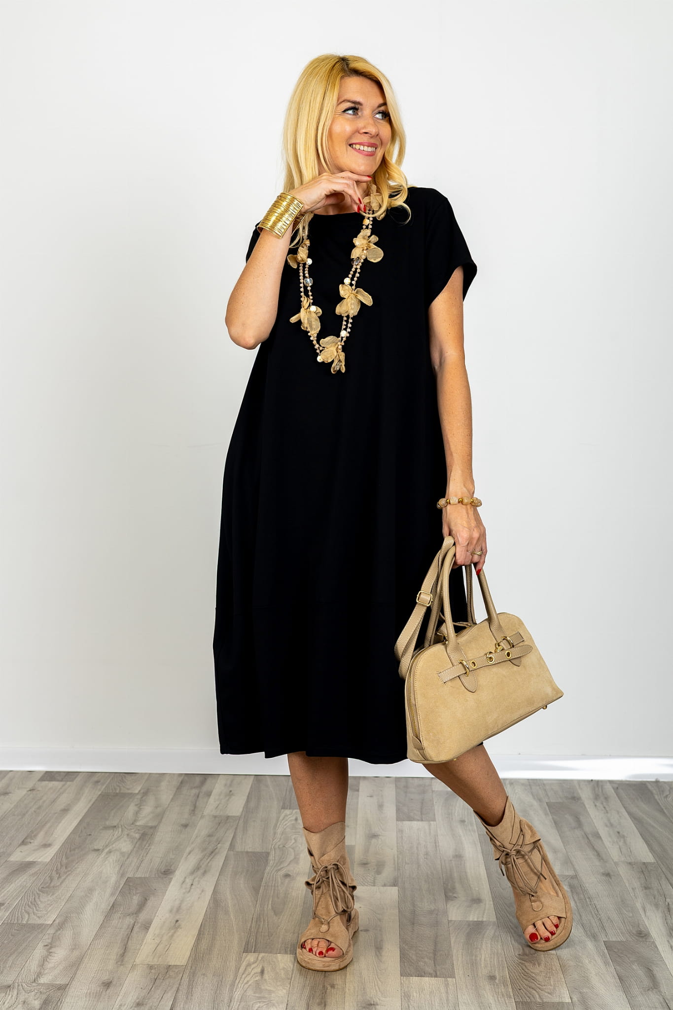 Model Valdaora to sukienka midi oversize plus size łączy swobodny krój z naturalnym materiałem oraz praktycznymi rozwiązaniami. Sukienka damska xxl midi dobrze układa się na sylwetce, zachowując wygodę i spójność formy. To propozycja oparta na prostym kroju, który odpowiada codziennym potrzebom.