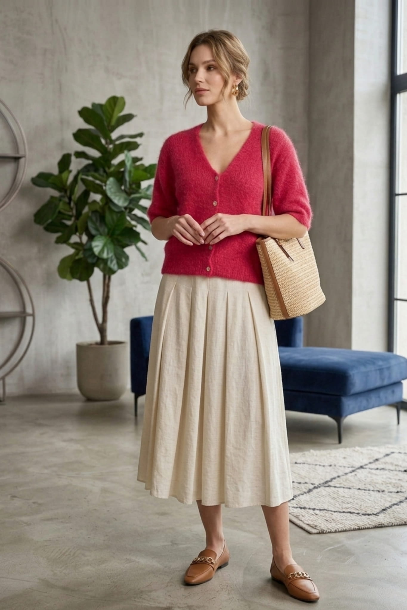Lekki sweter dzianinowy damski fuksja świetnie sprawdza się jako narzutka damska na guziki, którą można nosić zarówno na co dzień, jak i w bardziej dopracowanych zestawieniach. Fuksjowy kardigan damski cienki i miękki w dotyku zapewnia przyjemne odczucie na skórze, a jego subtelna struktura sprawia, że stylizacja wygląda świeżo i wyraziście.